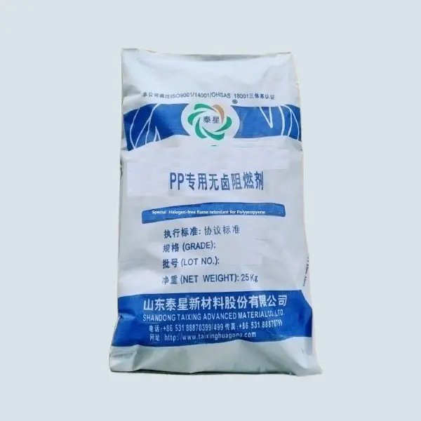 Chất chống cháy không chứa halogen polypropylen là một phốt pho, chất chống cháy không chứa halogen nitơ đối với polypropylen, Shandong Taixing là một nhà máy của chất chống cháy không chứa halogen polypropylen ở Trung Quốc kể từ năm 1998.